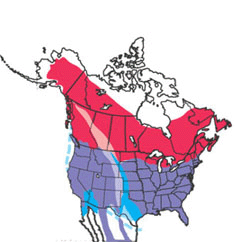 Northern Flickers can be found throughout most wooded regions of North America, and they are familiar birds in most suburban environments. They need some open area and do not nest in the middle of dense forests, but they breed in most other forest types. Outside of the breeding season, they also frequent other open areas, including suburban lawns and parks, grassland, sagebrush, and even sand dunes.