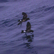 The smallest of the seabirds, the storm-petrels are usually predominantly dark brown or black, with white or light markings. Several species are mostly gray, including one species in the north Pacific. Many are migratory, and all are nocturnal at the nesting colonies. They fly very close to the water, and much of their feeding is done in flight. Incubation time and the time from hatching to fledging are highly variable because bad weather may prevent the adults from returning to the nest for several days. Eggs can hatch even if incubation is interrupted for up to 25 days, and young can survive extended periods of time between feedings, up to three weeks, by going into torpor, a sort of mini-hibernation to save energy. The ability of the egg to survive with suspended incubation and for the chick to become torpid are important for survival, since the adults spend a lot of time away from the nest looking for food that can be hard to find.